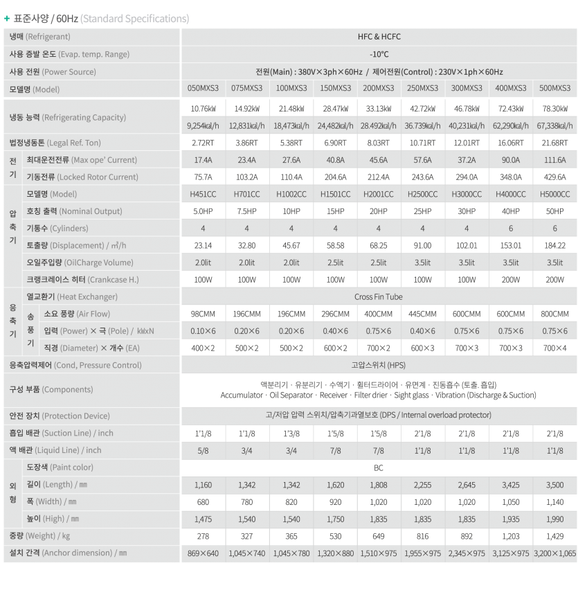 – 적용온도범위(증발온도 : -5ºC ~ -40ºC)
