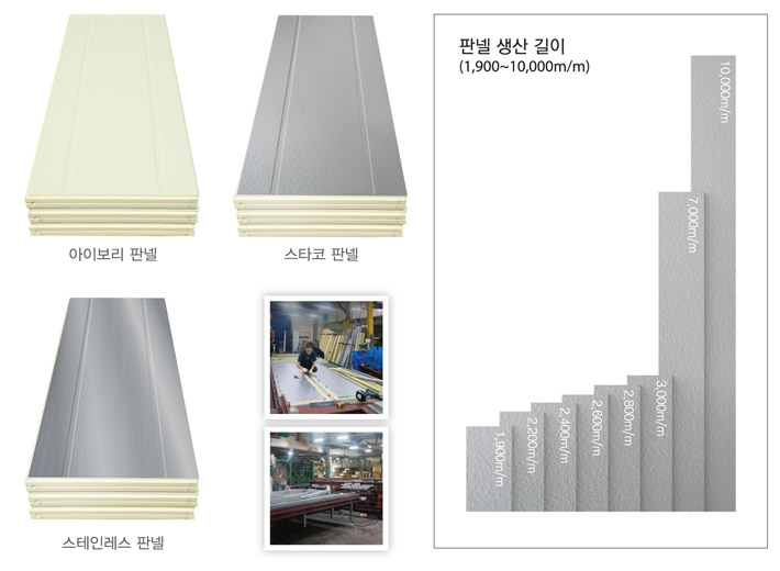 벽 판넬의 높이는 최대 6.8m까지 자유롭게 생산됩니다.